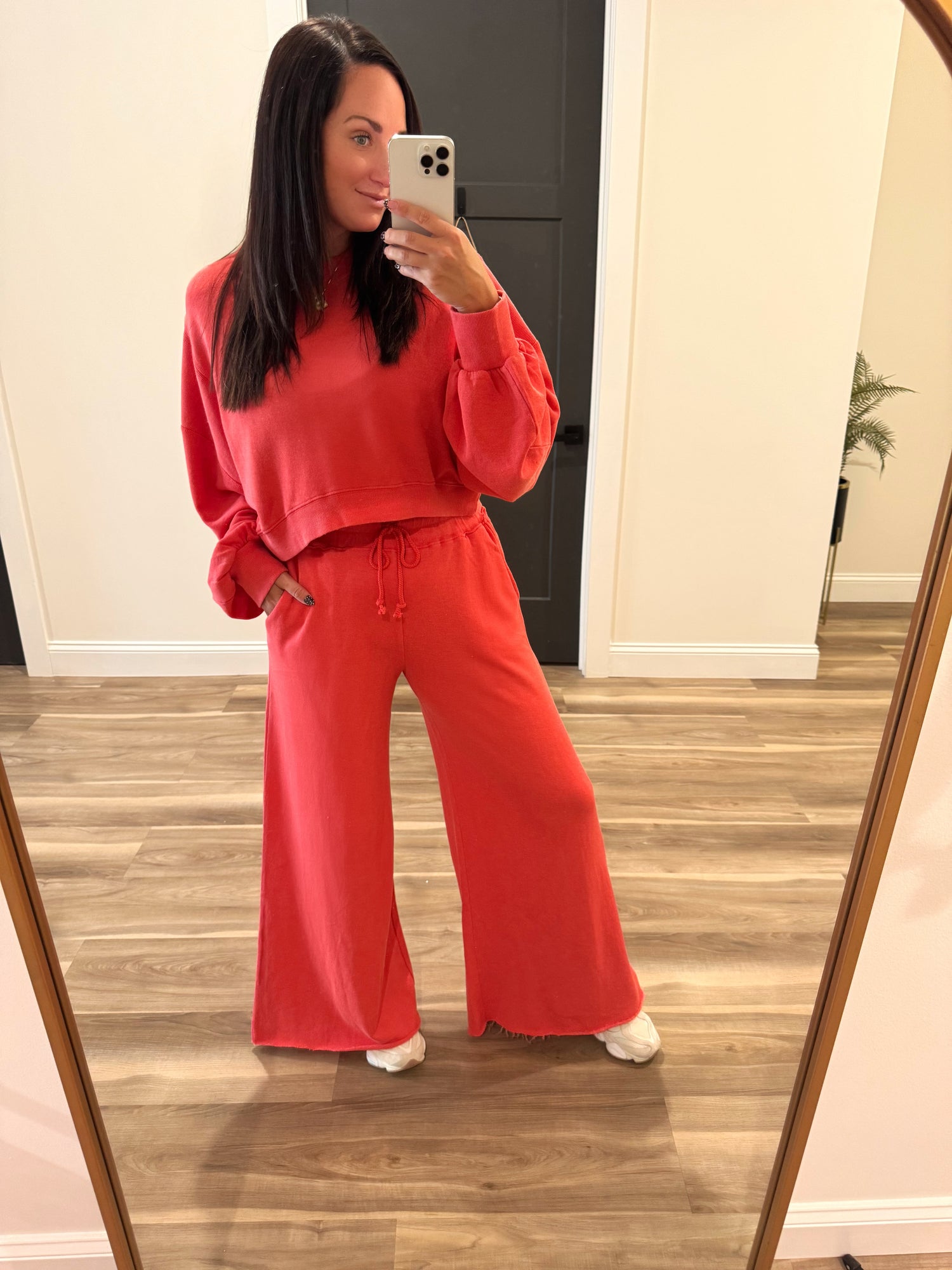 Say hello to the set that will elevate your lounge game - The Caroline 2-Piece Set! Designed for the girl who craves comfort without sacrificing style, this dreamy set features a relaxed-fit, cropped sweatshirt with chic balloon sleeves and high-waisted, wide-leg pants that drape beautifully for a flattering silhouette. Can we also take a moment for these gorgeous colors!?