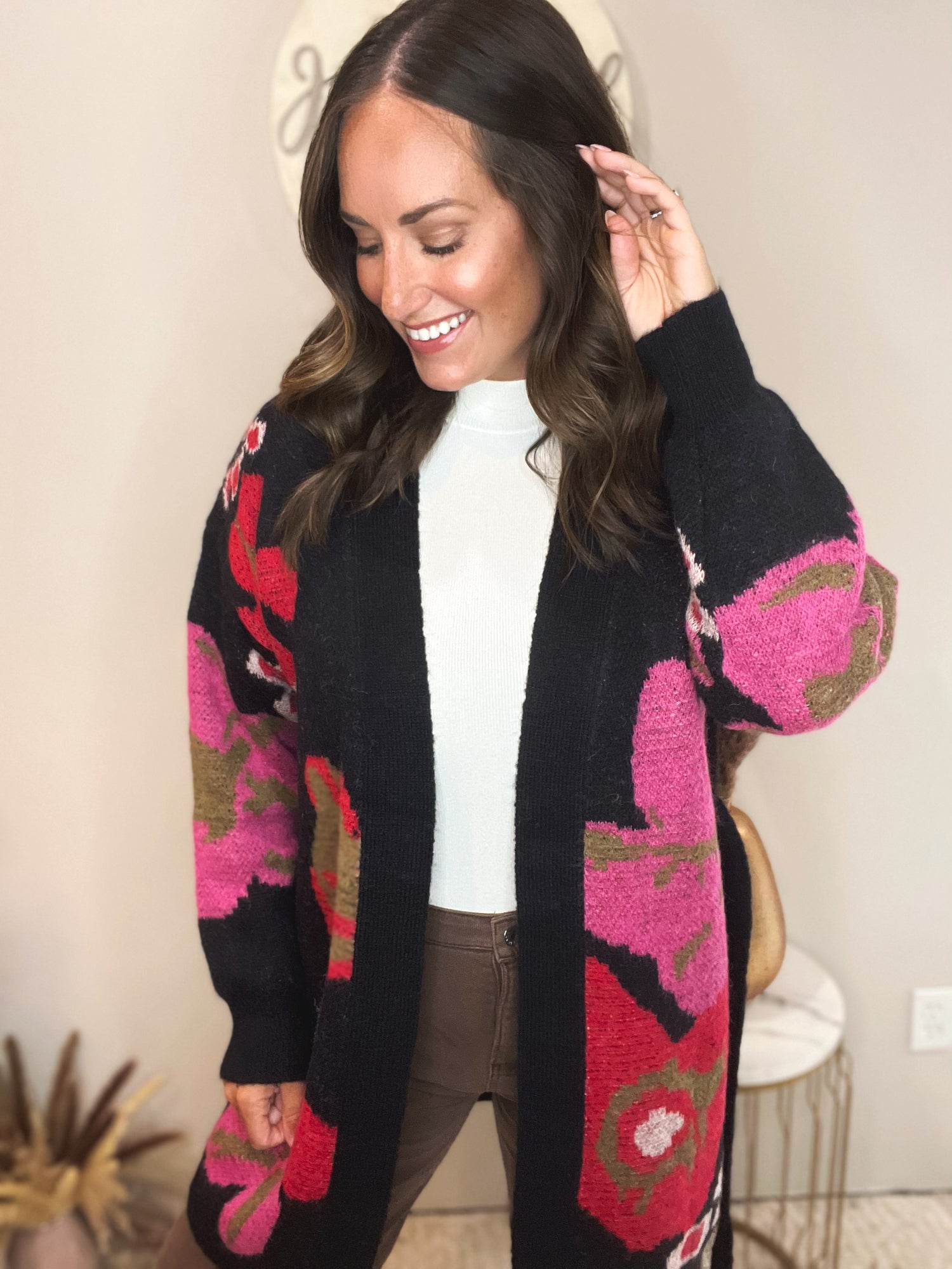 Our In A Daze Floral Cardigan is perfect for a fashionable, feminine look. The open front cardigan includes self-tie details at the waist, and is crafted with lightweight, non-sheer knit fabric to ensure a comfortable fit. With a floral print to add a stylish touch to any outfit, you'll be turning heads in this cardigan.