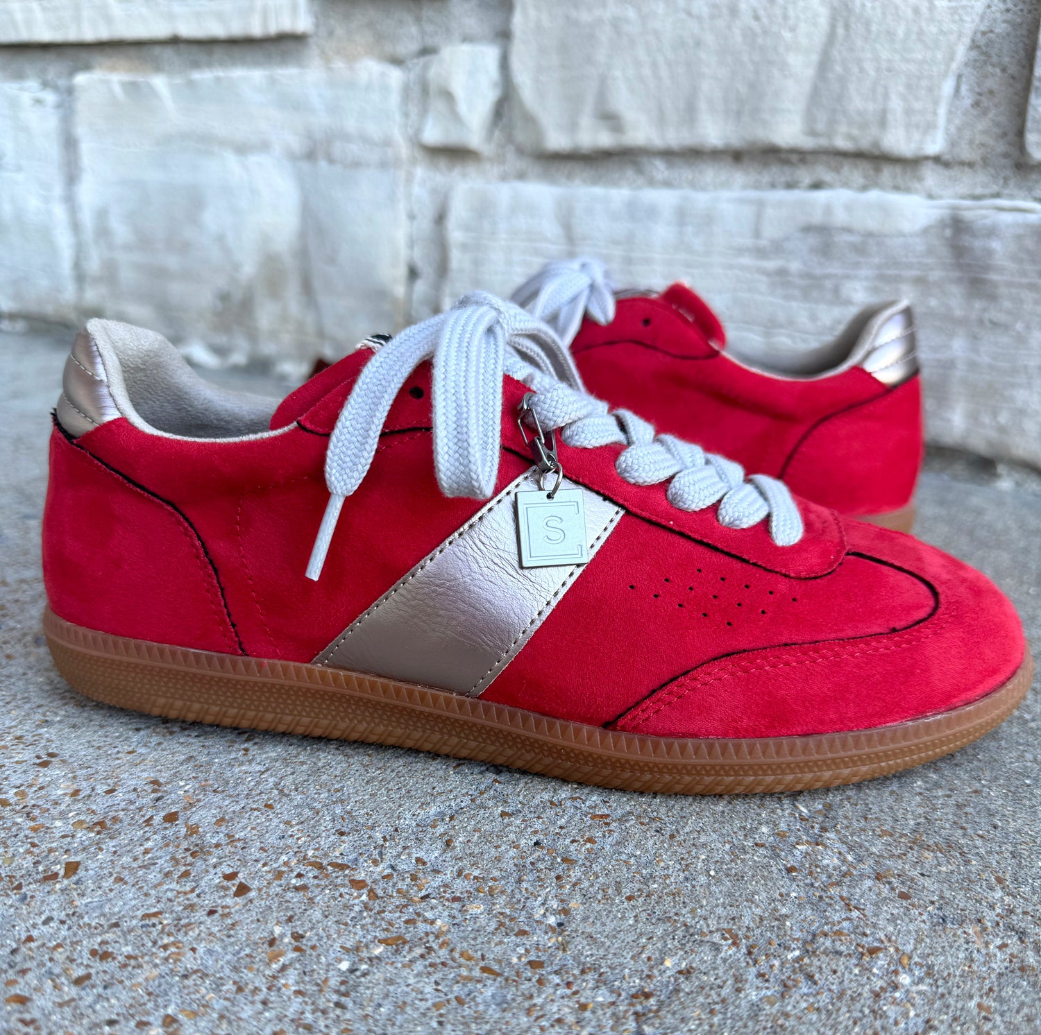 Step up your style game with these eye-catching Sydney red suede sneakers! Crafted to combine comfort and flair, these kicks are not just shoes—they’re a statement. The rich, vibrant red suede instantly grabs attention, while the sleek metallic accents add a touch of sophistication that sets them apart from the ordinary. Imagine these on your feet, turning heads wherever you go, and adding that perfect pop of color to your outfit.