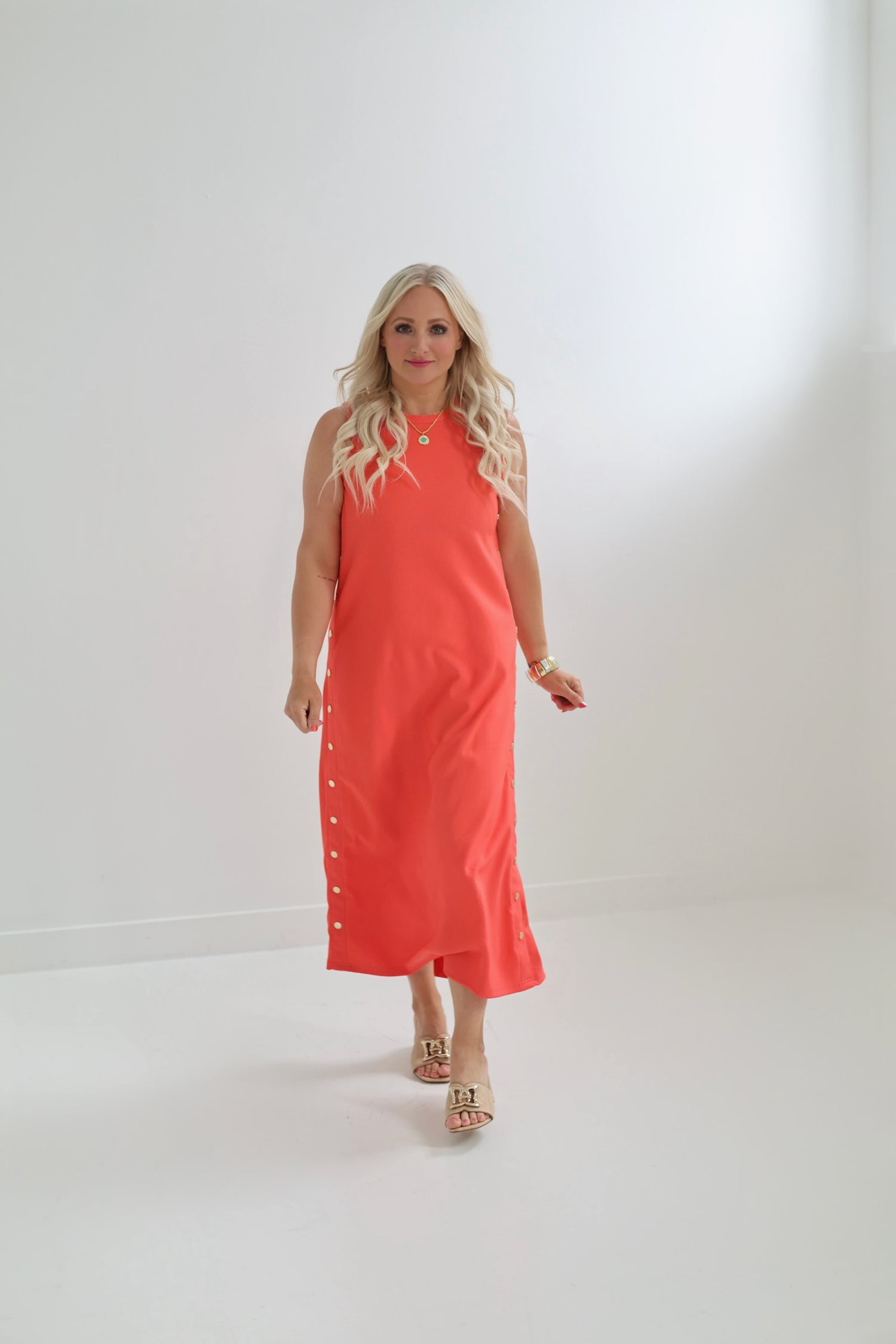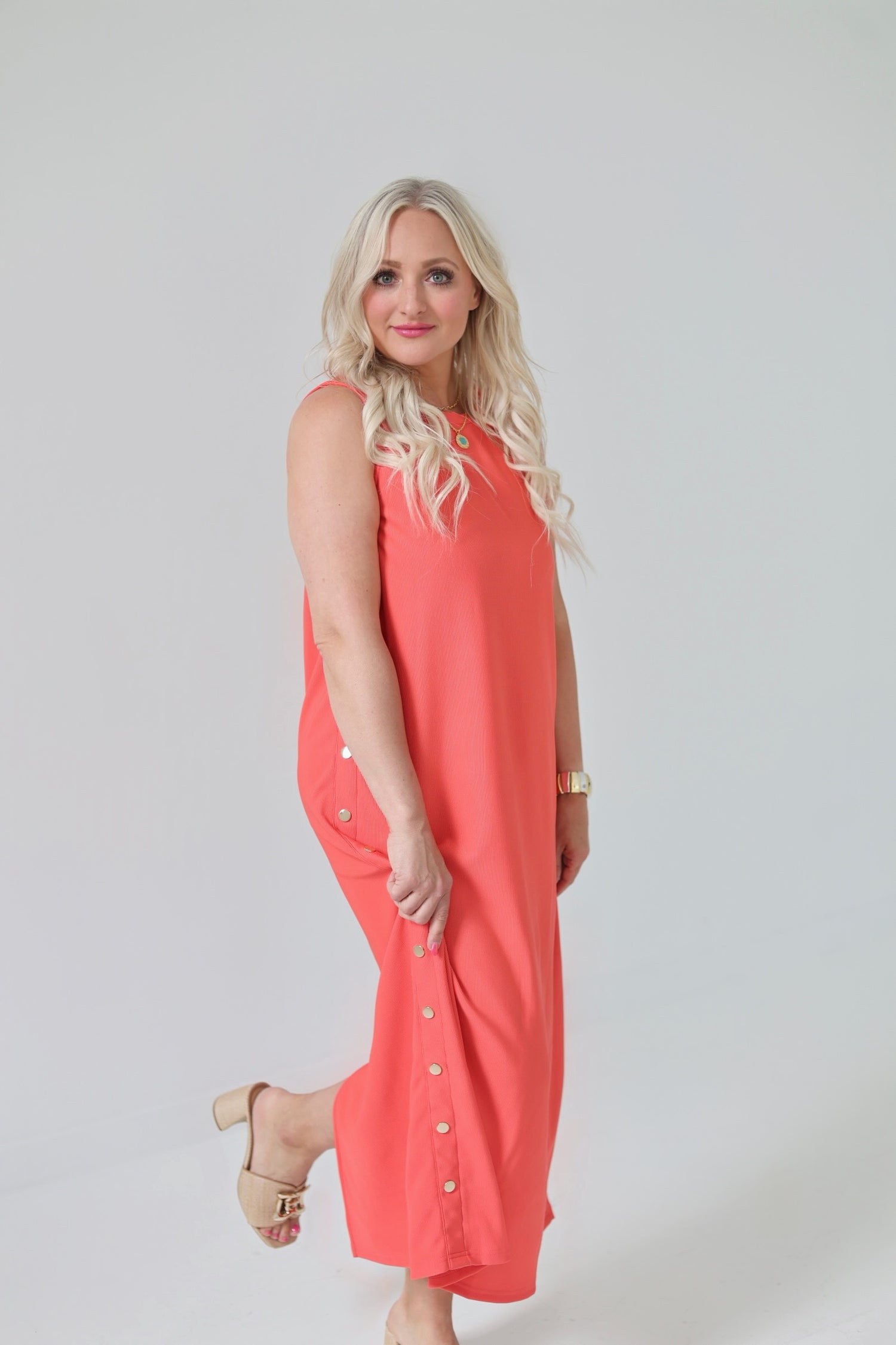 Available in two timeless colors—vibrant coral and classic black—this dress is perfect for dressing up with heels or keeping it casual with flats or sneakers.